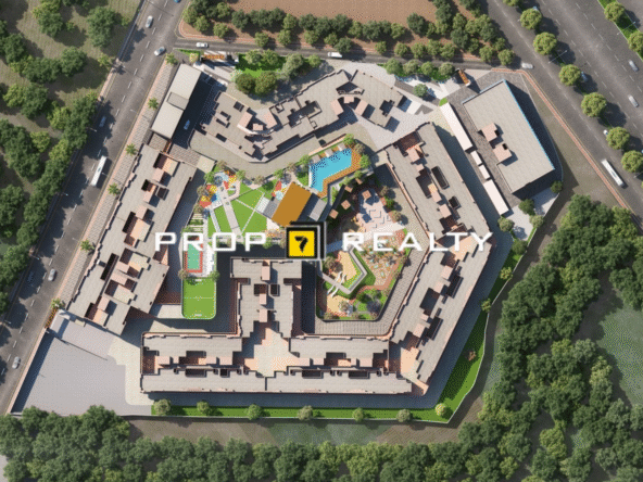 The development comprises 9 towers with B+G+P+19 floors, offering apartments ranging from approximately 710 to 1421 sq.ft. of carpet area.​